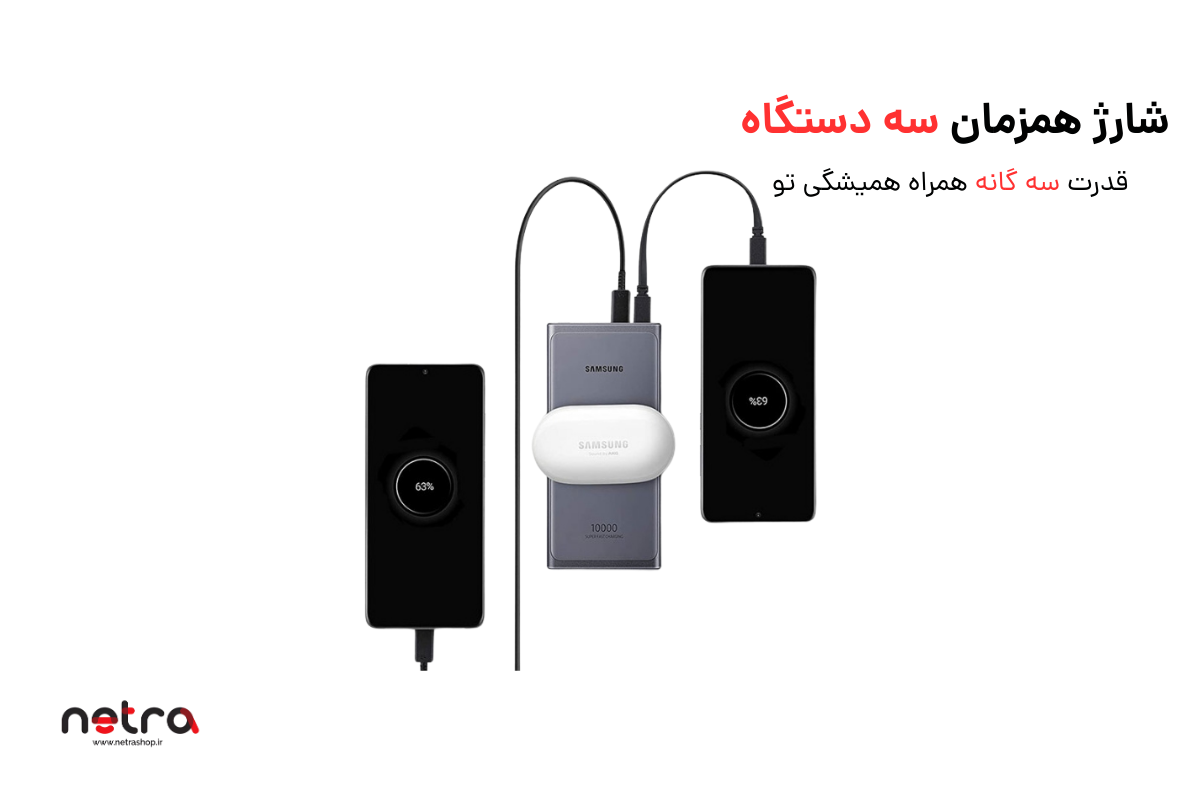پاوربانک بیسیم سامسونگ مدل S19 با ظرفیت ۱۰٬۰۰۰ میلیآمپر ساعت، یک همراه هوشمند برای شارژ سریع و بدون دردسر دستگاههای شماست.