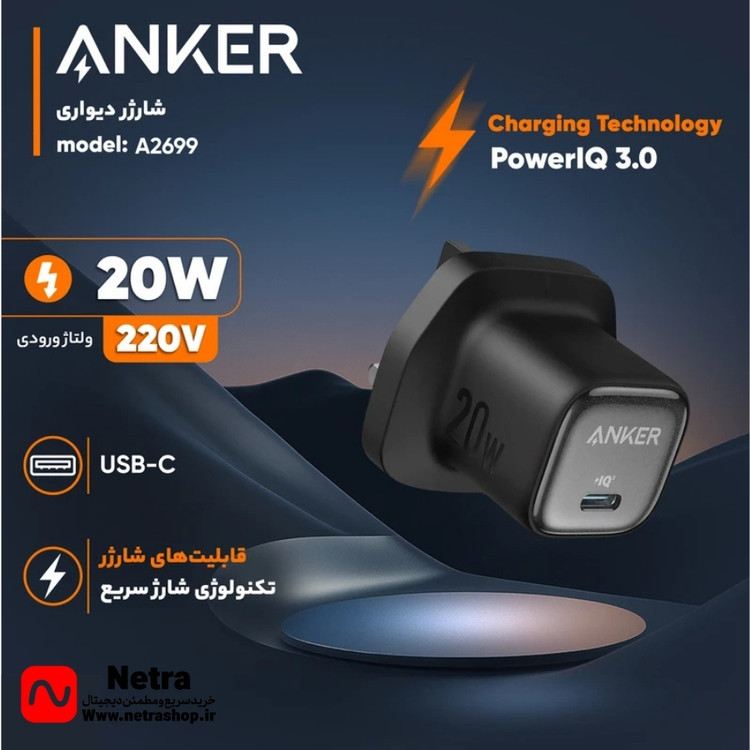 شارژر دیواری ۲۰ وات انکر مدل A2699 یک گزینه ایدهآل برای افرادی است که به دنبال شارژ سریع، ایمن و هوشمند برای دستگاههای USB Type-C خود هستند. با وزن سبک، بدنه مقاوم، توان خروجی ۲۰ وات، پشتیبانی از تکنولوژیهای USB PD ۱.۰ و PowerIQ ۳.۰، این شارژر تجربهای مطمئن و بهینه از شارژ دستگاههای هوشمند ارائه میدهد و مناسب استفاده روزمره در خانه، محل کار یا سفر است.